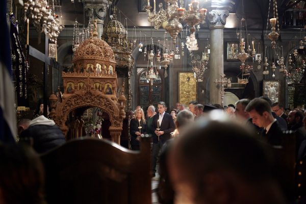 Ο πρωθυπουργός Κυριάκος Μητσοτάκης που βρίσκεται στην Τήνο παρακολούθησε την Ακολουθία και Περιφορά του Επιταφίου στον Ιερό Ναό Ευαγγελιστρίας Τήνου συνοδευόμενος από τη σύζυγό του Μαρέβα Γκραμπόφσκι. Από τις πιο συγκινητικές στιγμές στο νησί είναι όταν οι πέντε επιτάφιοι συναντώνται στην πλατεία της Παντάνασσας.