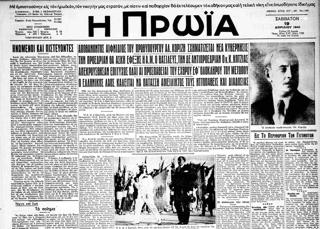 Στις 17 Απριλίου η εφημερίδα «Καθημερινή» δημοσίευσε ένα κύριο άρθρο σημαδιακό. Έλεγε ανάμεσα στ’ άλλα: «Χρειάζεται πειθαρχία, συσπείρωσις περί την κυβέρνησιν και τον βασιλέα και προσοχή εις τους περί ημάς. Οι ηττοπαθείς, οι διαδοσίαι, οι σκεπτικισταί, οι απαισιόδοξοι είναι εχθροί της Ελλάδος». Όλα έδειχναν ότι το τέλος πλησιάζει. Στις 18 Απριλίου 1941 δημοσιεύτηκε μια «έγκυρος» ανακοίνωση για την πολεμική κατάσταση.