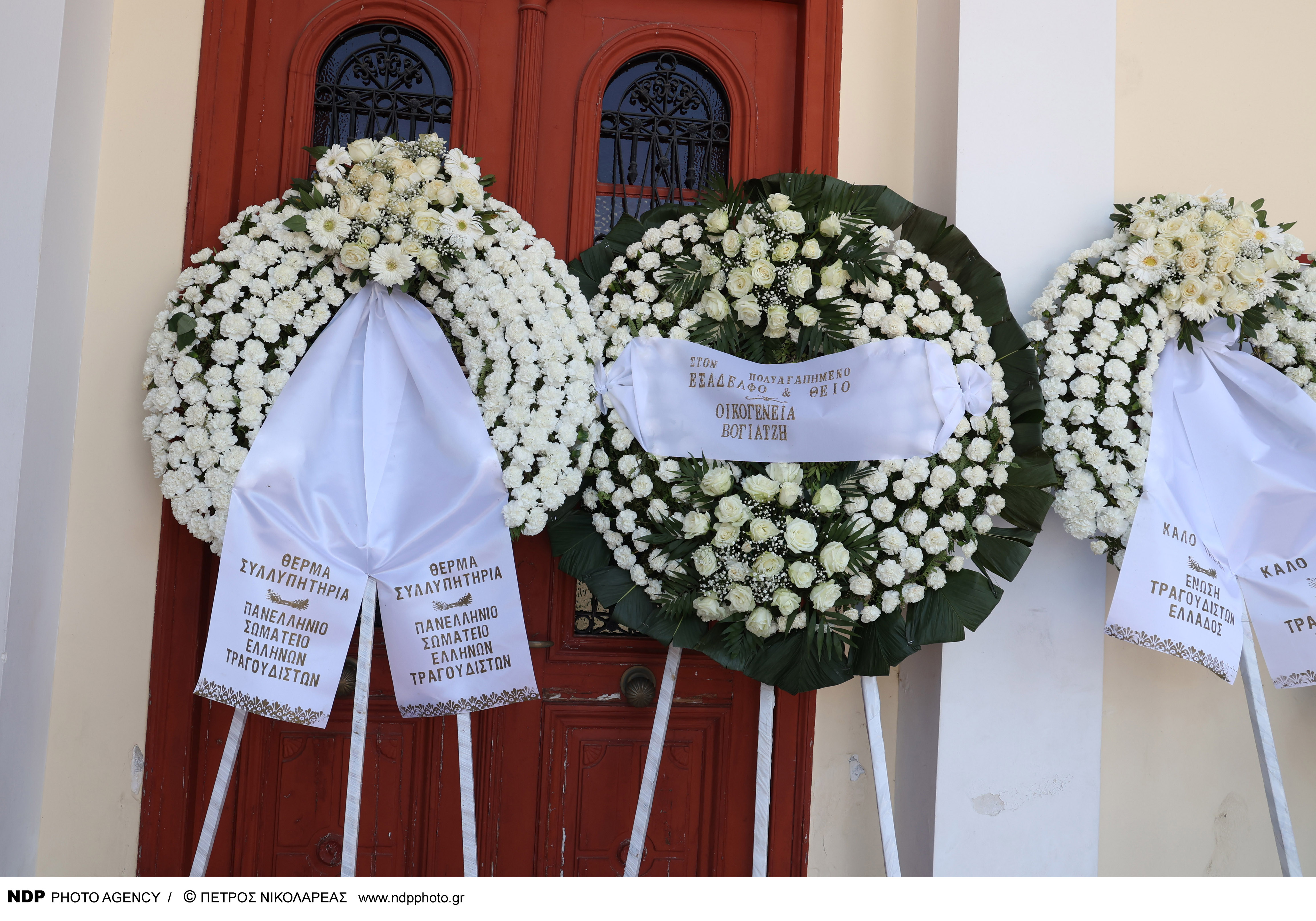 Αυτήν την ώρα φίλοι και συγγενείς αποχαιρετούν τον Γιάννη Βογιατζή στον Ιερό Ναό Αγίου Δημητρίου στην κεντρική πλατεία Κερατέας. Τα παιδιά και η δεύτερη σύζυγός του καλλιτέχνη καθώς και πολλοί συνάδελφοι του βρίσκονται στην εκκλησία για το τελευταίο αντίο.