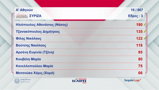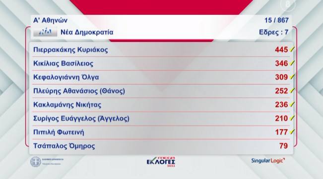 22:47 Οι υποψήφιοι που προηγούνται στην Α’ Αθήνας