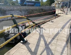 Ο οδηγός του αυτοκινήτου έχασε τον έλεγχό του, προσέκρουσε στα προστατευτικά κάγκελα και έπεσε στον χείμαρρο.
