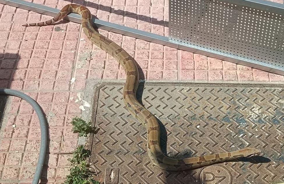 Ένας ψύχραιμος κάτοικος φωτογράφισε το ερπετό και ανήρτησε την εικόνα του στα μέσα κοινωνικής δικτύωσης και στην ιστοσελίδα samos24.gr, καλώντας τον ιδιοκτήτη του φιδιού να το μαζέψει.