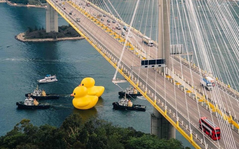 Το έργο Rubber Duck του Ολλανδού καλλιτέχνη Florentijn Hofman εμφανίστηκε για πρώτη φορά στο λιμάνι της Βικτόρια πριν από μια δεκαετία. Η εγκατάσταση σχεδιάστηκε το 2001 πριν κάνει το ντεμπούτο της στη Γαλλία έξι χρόνια αργότερα και εμφανίστηκε σε πόλεις όπως η Οσάκα, το Σίδνεϊ και το Σάο Πάολο, προτού φτάσει στο Χονγκ Κόνγκ, τον Μάιο του 2013.