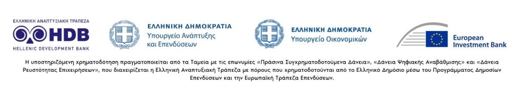 - Δάνεια ψηφιακής αναβάθμισης για την ανάπτυξη των ψηφιακών υποδομών τους. Σε αυτό το πλαίσιο εντάσσονται ο αναγκαίος εξοπλισμός και το λογισμικό, η αναβάθμιση της σύνδεσης στο διαδίκτυο, ευρυζωνικές συνδέσεις, δίκτυα κινητής τηλεφωνίας, δορυφορικές τεχνολογίες, εφαρμογές, ιστότοποι API και υπηρεσίες cloud. Επιπλέον, χρηματοδότηση μπορούν να αντλήσουν και για την ψηφιακή εκπαίδευση των εργαζομένων τους και την απασχόληση ειδικών πληροφορικής, digital marketing και social media, την εφαρμογή ψηφιακών τεχνολογιών (τρισδιάστατη εκτύπωση, ρομποτική, IoT, τεχνητή νοημοσύνη, drones, εικονική πραγματικότητα), καθώς επίσης και για δαπάνες συμβούλων για ανάλυση αναγκών και εκπόνηση μελέτης της επένδυσης, με τη χρηματοδότηση να ξεκινά από τα €25 χιλ. και να φτάνει έως και το €1 εκατ., με διάρκεια 2 έως 10 ετών και περίοδο χάριτος έως 24 μήνες.