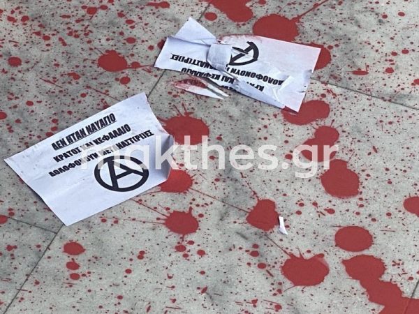 Ειδικότερα άγνωστοι πέταξαν κόκκινο χρώμα αλλά και τρικάκια στην είσοδο της υπηρεσίας, σε ένδειξη διαμαρτυρίας για το τραγικό ναυάγιο της Πύλου, με θύματα πρόσφυγες και μετανάστες.