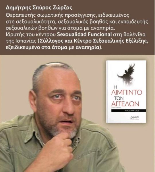 Τα παραπάνω επισημαίνει, μιλώντας στο ΑΠΕ-ΜΠΕ, ο σεξουαλικός βοηθός Δημήτρης Ζώρζος, ο οποίος σε ηλικία 27 ετών, λόγω εγκεφαλικού επεισοδίου, απέκτησε μια παροδική αναπηρία (ημιπληγία), η οποία αποκαταστάθηκε, αλλά εξακολουθεί να χαρακτηρίζεται ως ΑμεΑ γιατί διαγνώστηκε με καρκίνο. Εκείνη την εποχή ζούσε στην Ισπανία, όπου εκπαιδεύτηκε σε εναλλακτικές θεραπείες και έγινε ταντρικός θεραπευτής. Στην απόφασή του να γίνει σεξουαλικός βοηθός επηρεάστηκε από μια Αργεντίνα σεξολόγο, η οποία πρότεινε τη σύσταση μιας ομάδας σεξουαλικών βοηθών. Το 2010 δημιούργησε την Tandem Team στη Βαρκελώνη και τo 2016 τον Σύλλογο & Κέντρο Σεξουαλικής Εξέλιξης Sexualidad Functional με εξειδίκευση στα ΑμεΑ, στη Βαλένθια.