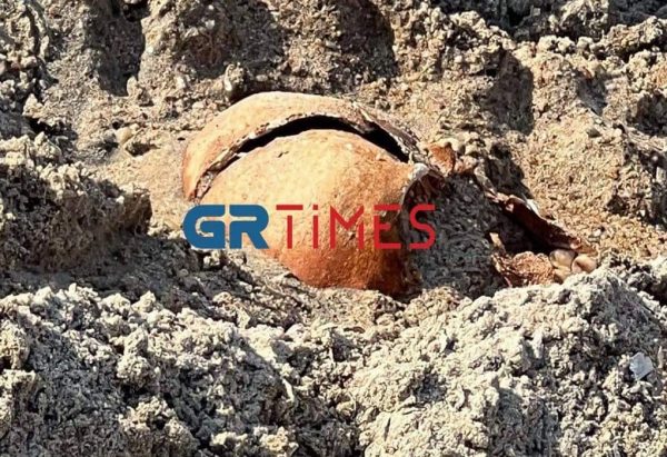 Μάλιστα όπως φαίνεται στις φωτογραφίες του GRTimes, τα οστά και το κρανίο ήταν καλυμμένα από την άμμο.