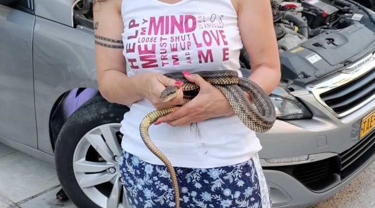 Ο Στέλιος Γερονυμάκης και την Ελευθερία Βεκίλογλου, εθελοντές της ομάδας για τη διάσωση όλων των ζώων που βρίσκονται σε κατάσταση κινδύνου “Animal Rescue and Defence Squad”, έσπευσαν στο σημείο και απομάκρυναν το φίδι.
