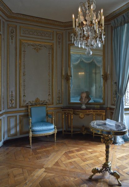 Η αυστριακής καταγωγής Μαρία Αντουανέτα ήταν 14 ετών όταν έφτασε στη Γαλλία για να παντρευτεί τον μελλοντικό Λουδοβίκο ΙΣΤ’. Ξεκίνησε τη διακόσμηση και την επίπλωση των ιδιωτικών δωματίων λίγο αφότου έγινε βασίλισσα το 1774 και συνέχισε μέχρι το 1788. Οι απαιτήσεις της για αλλαγές στα δωμάτια και η ανυπομονησία της να τελειώσουν οι εργασίες λέγεται ότι προκάλεσαν την οργή του επικεφαλής αρχιτέκτονα του βασιλιά, του Ange-Jacques Gabriel.