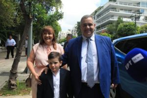 12:29 Από τους πρώτους που έφτασαν στο Προεδρικό ο Βασίλης Κικίλιας ο οποίος συνοδευόταν από την σύζυγό του Τζένη Μπαλατσινού.