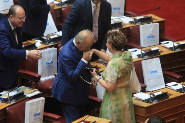 Τα πηγαδάκια μέσα στη Βουλή δεν έλειψαν, με την Όλγα Γεροβασίλη, μάλιστα να δέχεται χειροφίλημα.
