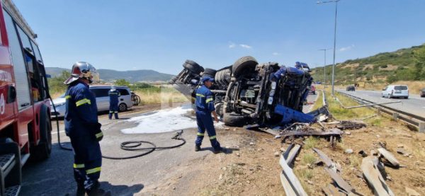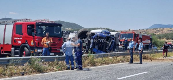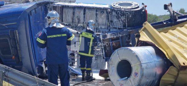 Σοκαριστικό τροχαίο σημειώθηκε στην Εθνική Οδό Βόλου – Λάρισας καθώς νταλίκα φορτωμένη με λαμαρίνες ανετράπη στο ύψος του Λατομείου.