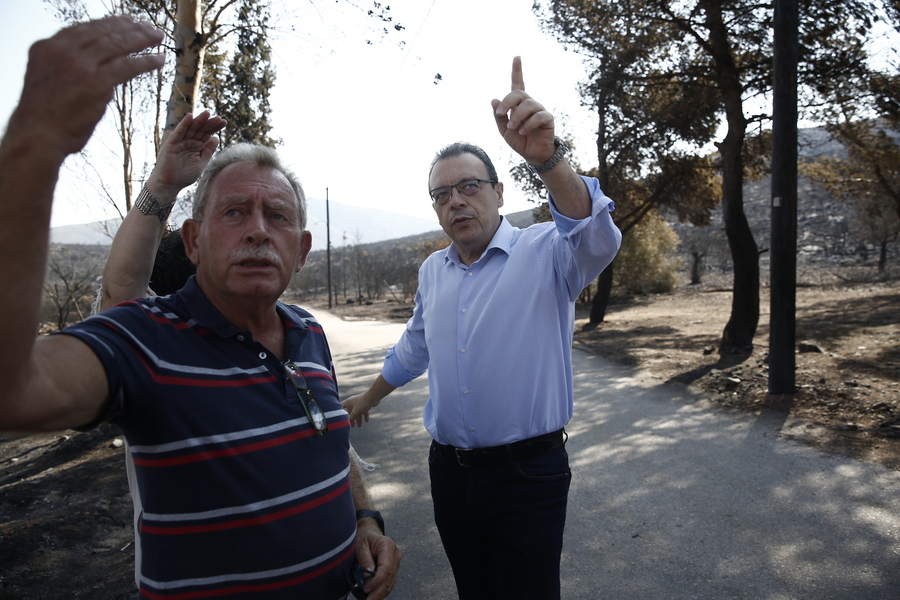 «Βρεθήκαμε σήμερα εδώ για να δούμε το αποτύπωμα της προχθεσινής πυρκαγιάς, συναντηθήκαμε με τον δήμαρχο και κάναμε μια πρώτη συζήτηση και για το μέγεθος του προβλήματος, της ζημιάς δηλαδή που έχει επέλθει, αλλά κυρίως πλέον για το σημαντικό έργο της αποτύπωσης, της αποκατάστασης και της αποζημίωσης.