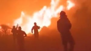 Η τραγική κατάσταση που επικρατεί στο χωριό Λάερμα αποτυπώνεται από τα βίντεο που ανέβασαν χρήστες στα social media και δείχνουν τις αγωνιώδεις προσπάθειες των πυροσβεστών να σώσουν περιουσίες.