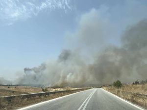 Φωτιά ξέσπασε πριν από λίγο και στην περιοχή του Αλμυρού – στο 293ο χιλιόμετρο – με τις φλόγες να περνούν κυριολεκτικά πάνω από τη νησίδα της Εθνικής Οδού.