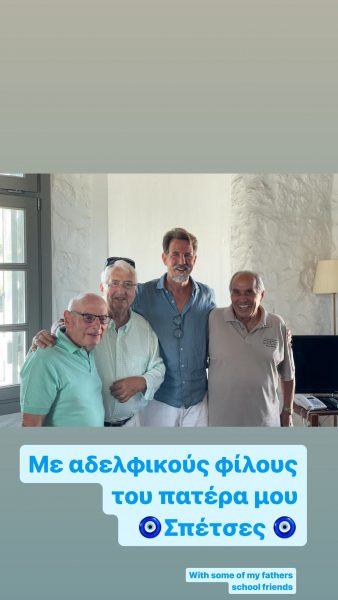 Στη φωτογραφία ποζάρουν και οι τέσσερις χαμογελαστοί στον φωτογραφικό φακό. «Με αδελφικούς φίλους του πατέρα μου, Σπέτσες», έγραψε στη λεζάντα της ανάρτησης.