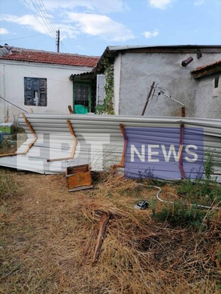 Ο δυνατός αέρας ξήλωσε στέγες σπιτιών και κεραμίδια όπως κι έναν πλάτανο τον οποίο έριξε πάνω σε ένα σπίτι.