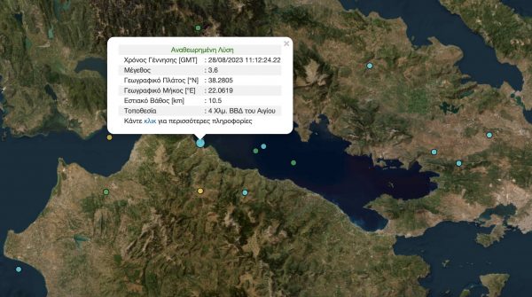 Σεισμός 3,6 Ρίχτερ σημειώθηκε πριν από λίγο στο Αίγιο.
