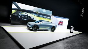 Πρωταγωνιστής και στα δύο της περίπτερα η “Bold & Pure” σχεδιαστική φιλοσοφία της Opel με την Opel AI – τεχνητή νοημοσύνη να δεσπόζει για την παραγωγή εικόνας, που αναπτύχθηκε ειδικά για την Opel – και ένα ειδικό τερματικό που βρίσκεται στο περίπτερο, μπορούν να δημιουργήσουν διάφορα backgrounds για την οθόνη πίσω από το concept car.