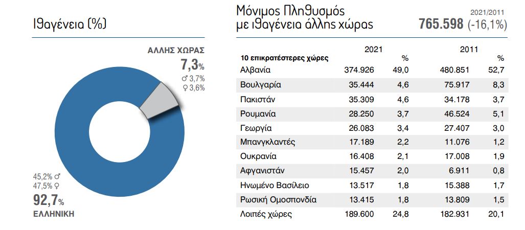 Στη δημοσιότητα δόθηκαν τα αποτελέσματα της Απογραφής του Πληθυσμού – Κατοικιών για το έτος 2021.