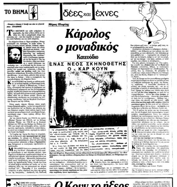 Σκίτσο του Κουν από τον Κ. Λάσκαρη («ΤΟ ΒΗΜΑ», 22.2.1987, Ιστορικό Αρχείο «ΤΟ ΒΗΜΑ» & «ΤΑ ΝΕΑ»)