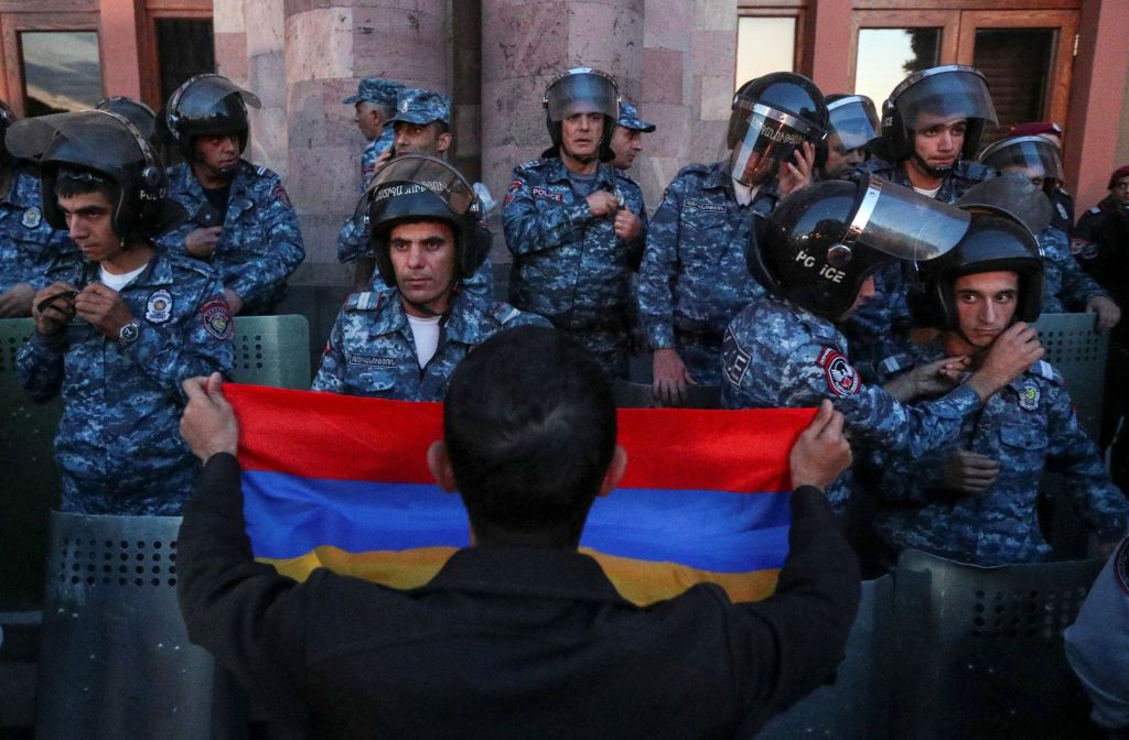 Οι διαδηλωτές, στην πλειονότητά τους νέοι, συγκεντρώθηκαν στην Πλατεία Δημοκρατίας, στην καρδιά του Γερεβάν. Στο κέντρο της πόλης θεάθηκαν και πολλά φορτηγά στα οποία επέβαιναν Αρμένιοι στρατιώτες.