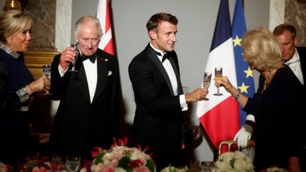 Στο Παλάτι των Βερσαλλιών πραγματοποιήθηκε το επίσημο δείπνο που παρέθεσε προς τιμήν του βασιλιά Καρόλου, ο Γάλλος Πρόεδρος Εμανουέλ Μακρόν.