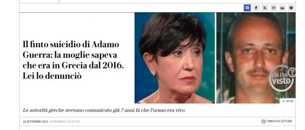 Σύμφωνα με το ιταλικό πρακτορείο ειδήσεων Ansa όμως, στην όλη αυτή ιστορία τώρα προστίθεται ένα νέο, σημαντικό στοιχείο. Η σύζυγος του Γκουέρα, η Ραφαέλα Μπόργκι, η οποία ζήτησε τη βοήθεια εκπομπής έρευνας της Rai, στην πραγματικότητα φέρεται να γνώριζε από το 2016 ότι ο άνδρας της βρισκόταν στην Ελλάδα.