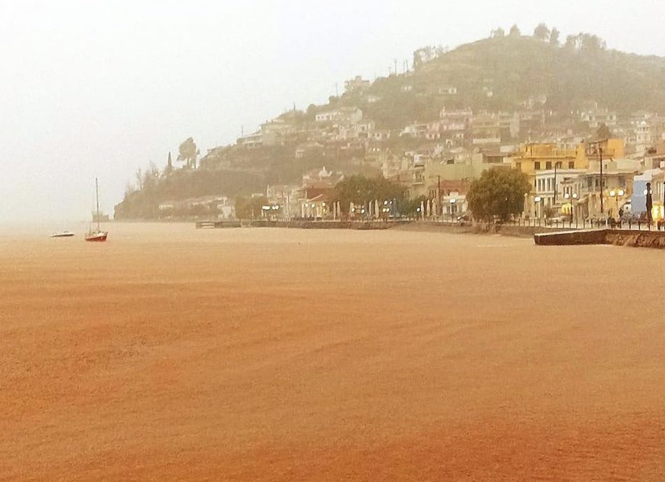 Ενδεικτικές είναι οι εικόνες από τη Λίμνη Ευβοίας, όπου ο όγκος της λάσπης που έχει κατέβει από τα βουνά έφτασε μέχρι τη θάλασσα.