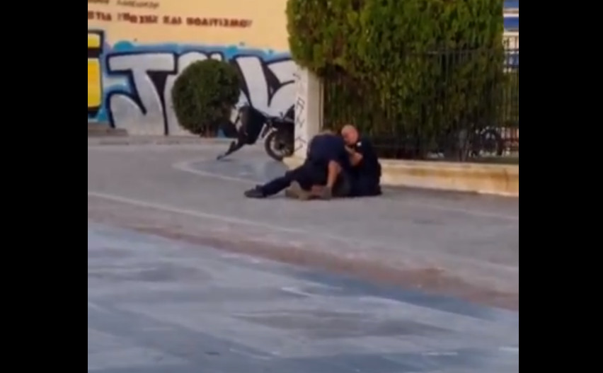 Λίγο μετά φέρεται να λογομάχησαν οι τρεις τους, με αποτέλεσμα οι άντρες του Λιμενικού να τον πετάξουν κάτω, να του κάνουν κεφαλοκλείδωμα και τελικώς να του φορέσουν χειροπέδες.