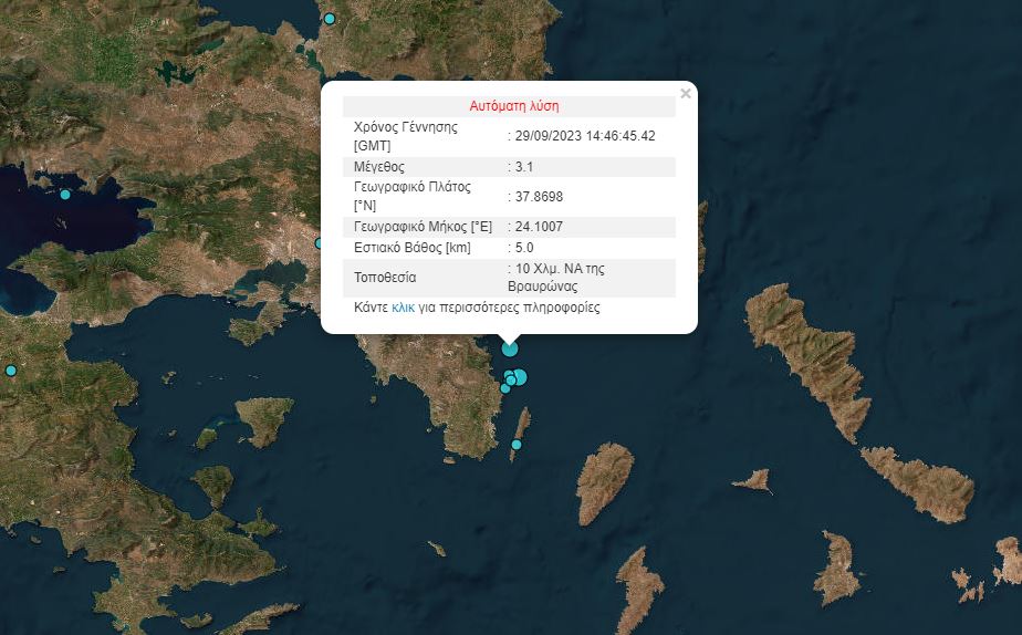 Ειδικότερα, στις 17:46 οι σεισμογράφοι του Γεωδυναμικού Ινστιτούτου κατέγραψαν σεισμό, μεγέθους 3,2 βαθμών, που έγινε αισθητός σε αρκετές περιοχές του λεκανοπεδίου.