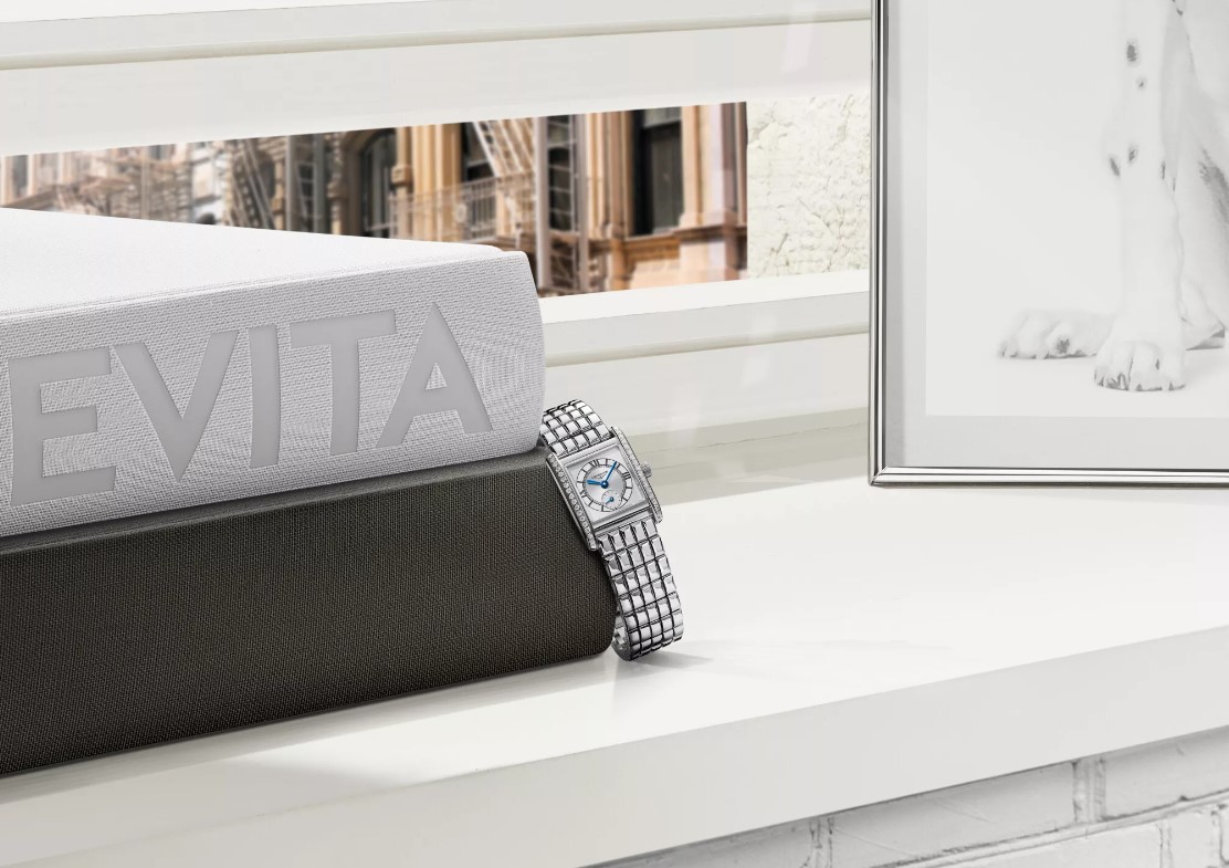 Το κορυφαίο ρολόι από τη νέα συλλογή Mini DolceVita θαμπώνει με την κάσα του, πλαισιωμένη από 38 διαμάντια IF-VVS Top Wesselton. Μέσα στην ορθογώνια κάσα βρίσκεται ένα νέο Cosmo κυκλικό καντράν που έλκει την προσοχή με την αδιαπραγμάτευτη κομψότητά του. Το καντράν Cosmo, που παρουσιάζεται μέσα από ένα αντιχαρακτικό κρύσταλλο σαπφείρου, χαρακτηρίζεται από διακριτικές αντιθέσεις, διαθέτει ασημί ακτινωτό φόντο, λευκό ματ δακτύλιο ωρών, ασημί ακτινωτό εσωτερικό κύκλο, και ένα λευκό ματ στρόγγυλο υποκαντράν δευτερολέπτων. Οι βαμμένοι Λατινικοί αριθμοί και οι δείκτες από μπλε ανοξείδωτο ατσάλι είναι ιδιαίτερα ευδιάκριτοι έχοντας για φόντο τις πιο ανοιχτές αποχρώσεις του καντράν.