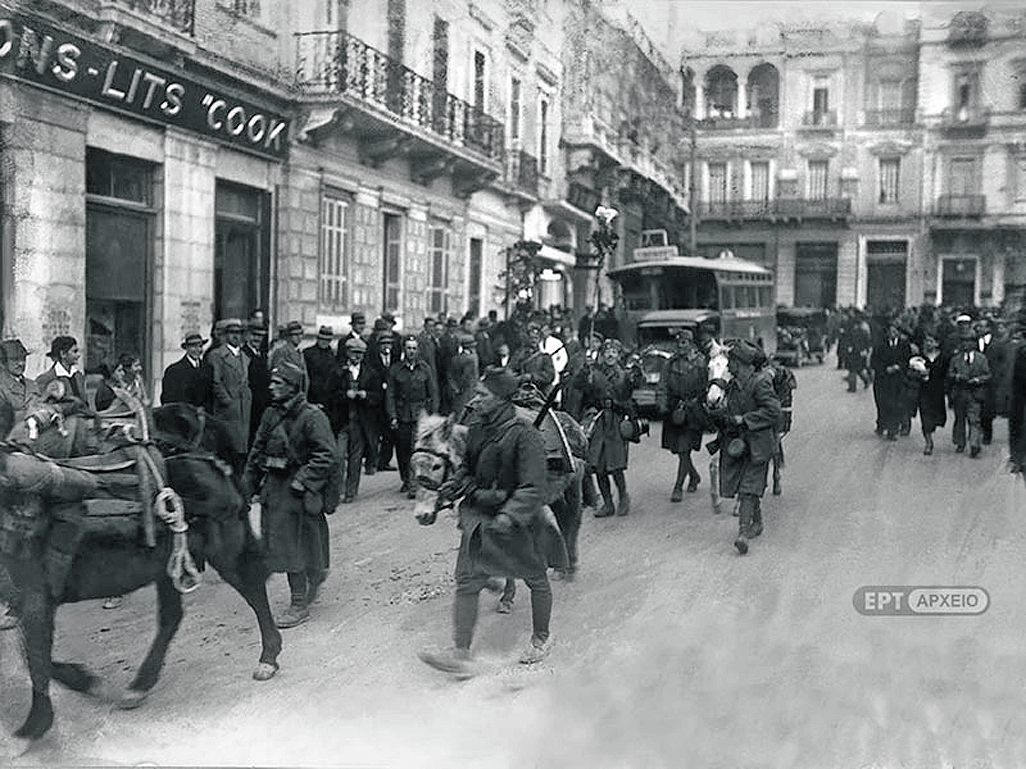 Αναχώρηση για το Μέτωπο. Στρατιώτες στην πλατεία Συντάγματος.