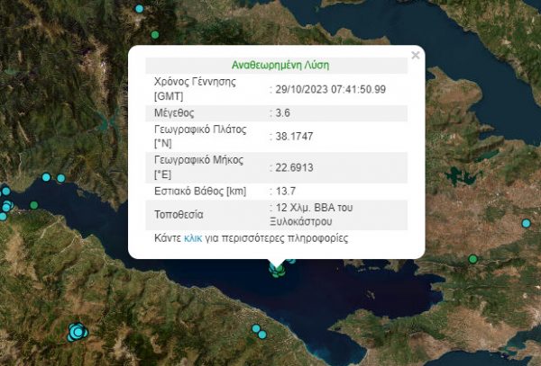 Σύμφωνα με το Γεωδυναμικό Ινστιτούτο, το μέγεθος της δόνησης ήταν 3,6 Ρίχτερ ενώ το επίκεντρο εντοπίζεται 12 χιλιόμετρα ΒΒΑ του Ξυλοκάστρου.