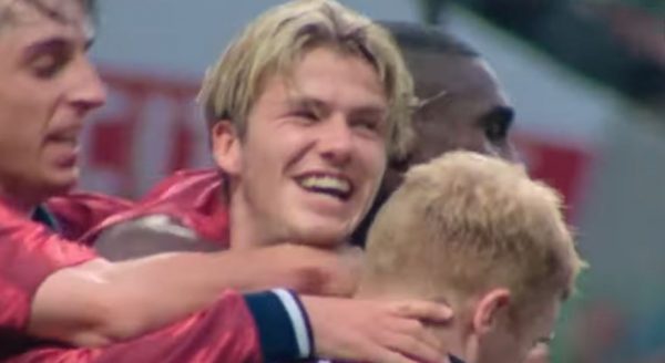 Ο Μπέκαμ, 26 ετών τότε, ξεσκονίστηκε, ανέβασε το δεξί του πόδι, έστειλε την μπάλα στην αριστερή πάνω γωνία και τους οπαδούς στο Ολντ Τράφορντ σε ντελίριο με ένα γκολ που έμεινε στην ιστορία.