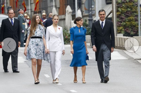 Η πριγκίπισσα Λεονόρ, που ακολουθεί στη παρούσα φάση στρατιωτική εκπαίδευση στη Σαραγόσα, είχε στο πλευρό της τους γονείς της βασιλιά Φελίπε και βασίλισσα Λετίθια, καθώς και τη μικρότερη αδερφή της, τη 16χρονη Ινφάντα Σοφία.