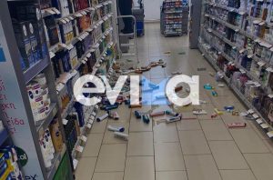 Στις πρώτες εικόνες που μεταδίδει το evima.gr από την περιοχή, φαίνονται μαθητές σε σχολείο να έχουν βγει έξω, όπως και ζημιές που έχουν προκληθεί σε σούπερ μάρκετ, με πράγματα να έχουν πέσει από τα ράφια.