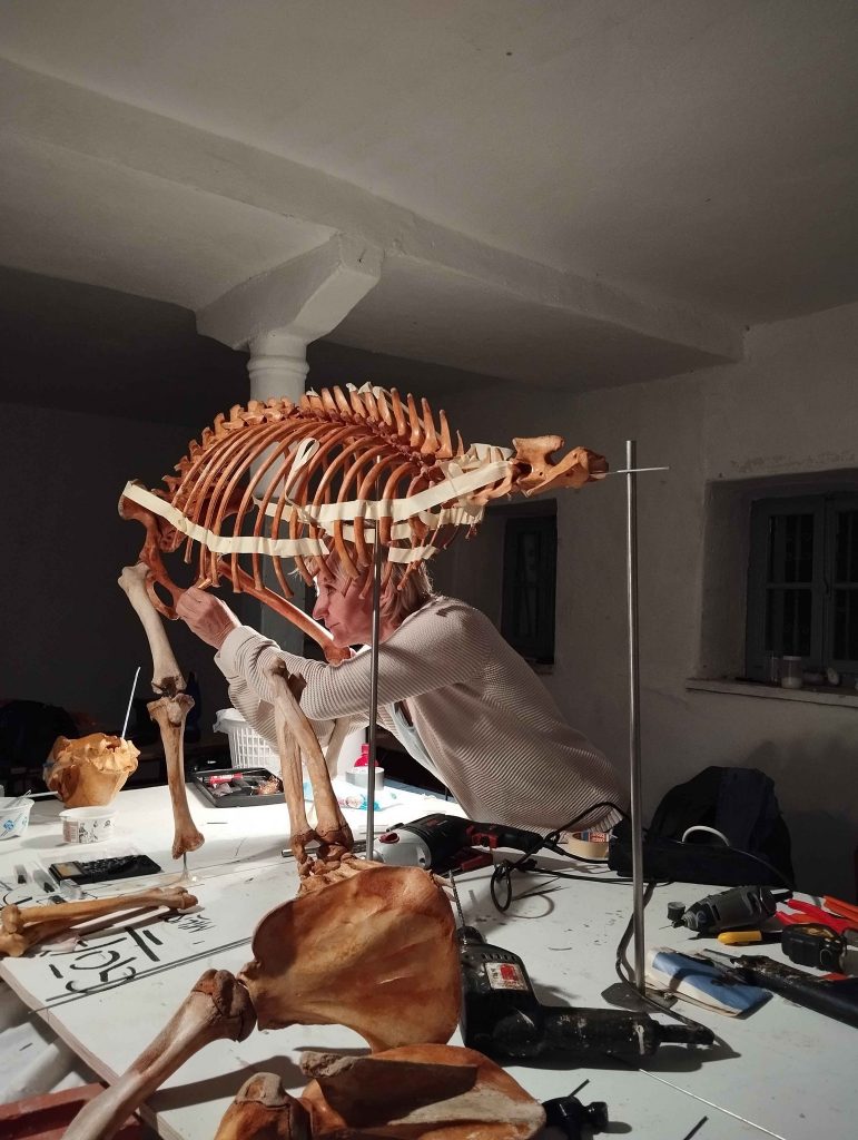 «Υπολογίζω ότι τα κόκκαλα ήταν από 120 έως 200 όμως έλειπαν πολλά, ιδιαίτερα μικρά κοκκαλάκια στα χέρια και τα πόδια του ζώου τα οποία μάλλον έγιναν τροφή από αλεπούδες και τσακάλια» λέει η κ.Ίβοβιτς η οποία χρειάστηκε δεκάδες ώρες δουλειάς για να αποκαταστήσει τον σκελετό δουλεύοντας στον χώρο όπου τον φιλοξενεί, το κτίριο του πρώην Δημοτικού Σχολείου Ψαράδων.