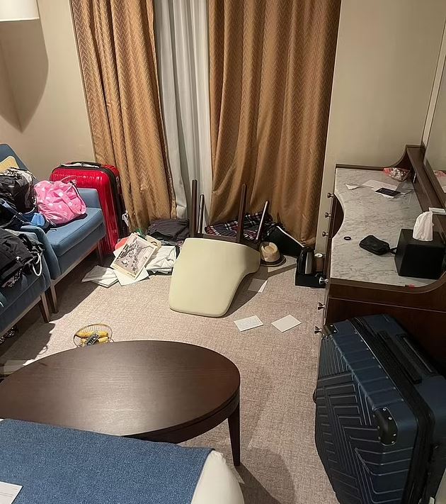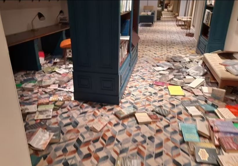Η ίδια και ο σύζυγός της αποβιβάστηκαν περίπου στις 09:00 την Τρίτη και περιέγραψε ότι είδε εργάτες να αντικαθιστούν γυάλινες πόρτες, παράθυρα και χωρίσματα που είχαν σπάσει από την καταιγίδα.