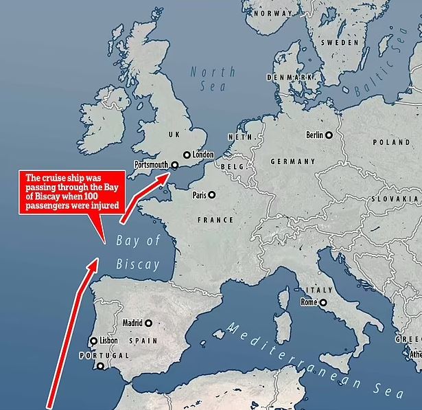 Σύμφωνα με το BBC, περίπου 100 άνθρωποι τραυματίστηκαν όταν το πλοίο εξετράπη της πορείας του κατά τη διάρκεια ενός ελιγμού ασφαλείας το Σάββατο όταν έπεσε σε σφοδρή καταιγίδα.