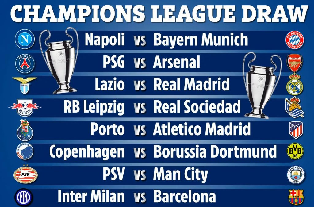 Οι νικητές των 8 ομίλων του Champions League είναι οι: Μπάγερν, Άρσεναλ, Ρεάλ, Ρεάλ Σοσιεδάδ, Ατλέτικο, Ντόρτμουντ, Μάντσεστερ Σίτι, Μπαρτσελόνα. Οι 8 δεύτεροι: Κοπεγχάγη, Αϊντχόφεν, Ίντερ, Νάπολι, Λάτσιο, Παρί, Λειψία, Πόρτο. Τα πρώτα ματς της φάσης των «16» θα διεξαχθούν τα διήμερα 13-14 και 20-21 Φεβρουαρίου και οι επαναληπτικοί στις 5-6 και 12-13 Μαρτίου.