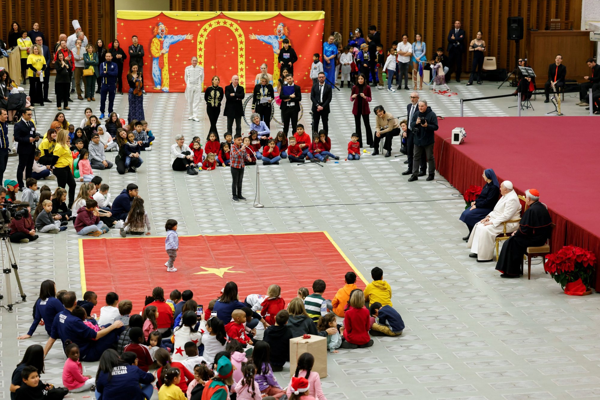 Στιγμιότυπο από την εκδήλωση για τα γενέθλια του Πάπα, στο Βατικανό, 17 Δεκεμβρίου 2023. REUTERS/Remo Casilli