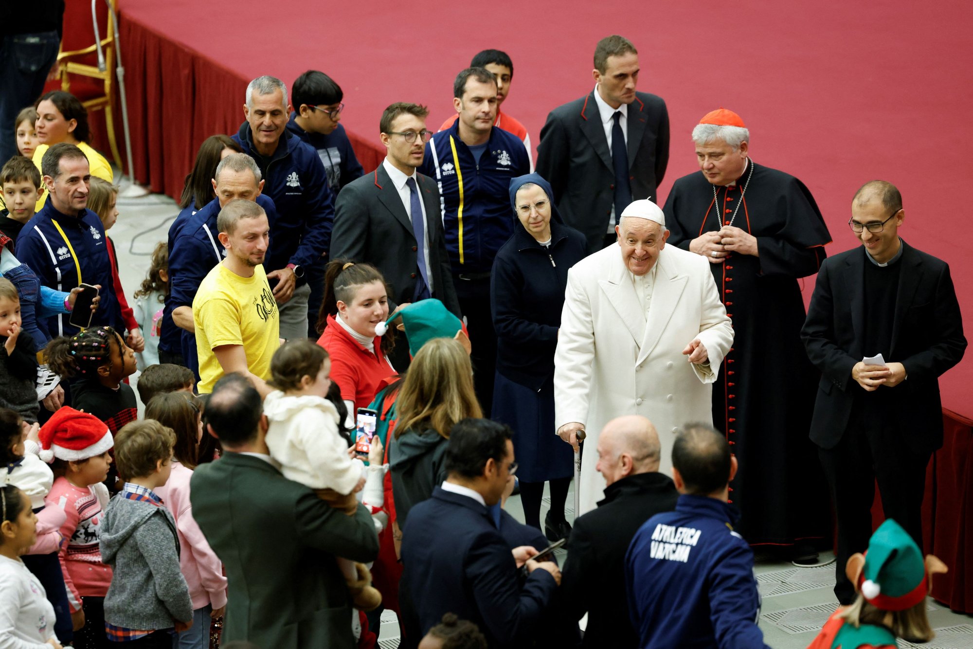 Ο Πάπας κάλεσε τα παιδιά και τις οικογένειες που συγκεντρώθηκαν στην αίθουσα Παύλος ΣΤ’ του Βατικανού να κλείσουν τα μάτια τους και να σκεφτούν ποια ιδιαίτερη χάρη θα ήθελαν να ζητήσουν από τον Ιησού αυτά τα Χριστούγεννα.