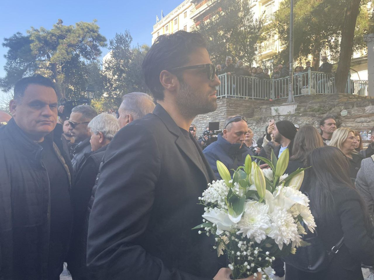 Η Άντζελα Δημητρίου, ο Πέτρος Ιακωβίδης, ο Κωνσταντίνος Αργυρός, ο Γιάννης Ζουγανέλης και ο Κώστας Μακεδόνας βρίσκονται, μεταξύ άλλων, στη Θεσσαλονίκη για να αποχαιρετήσουν τον φίλο και συνεργάτη τους.