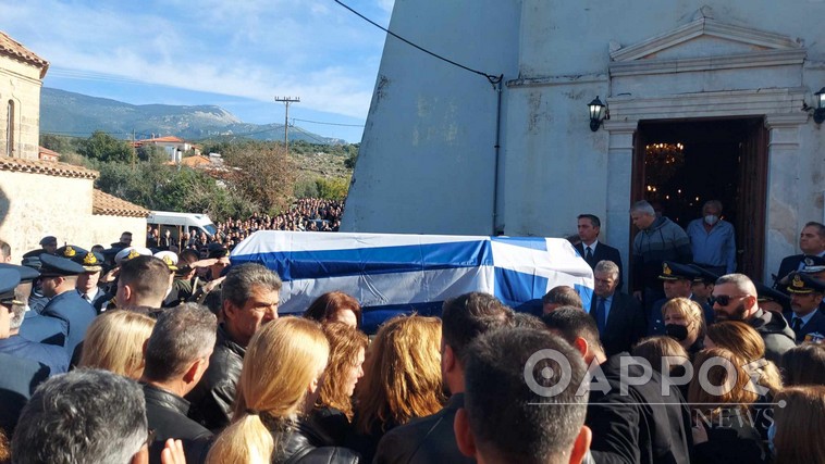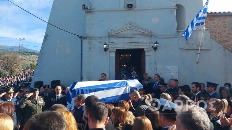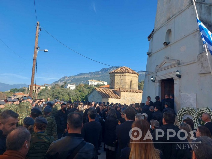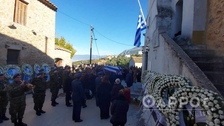 Άγημα της Αεροπορίας βρίσκεται στον ιερό ναό Κοιμήσεως της Θεοτόκου στη Μεγάλη Μαντίνεια του Δήμου Δυτικής Μάνης για να τιμήσει τον επισμηναγό, ο οποίος αφήνει πίσω του δυο ανήλικα παιδιά και τη σύζυγό του που ήταν αυτόπτες μάρτυρες της τραγωδίας.
