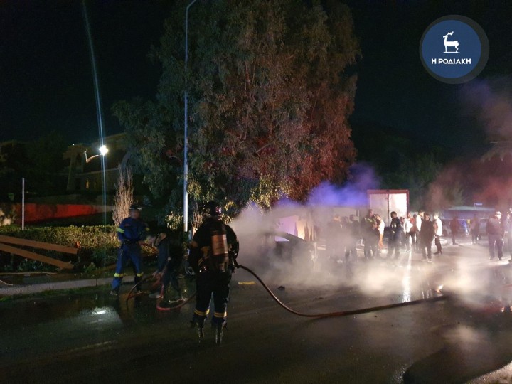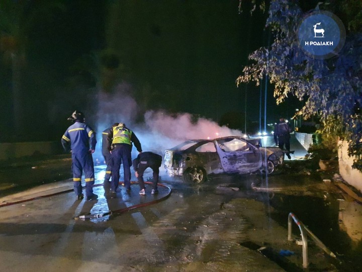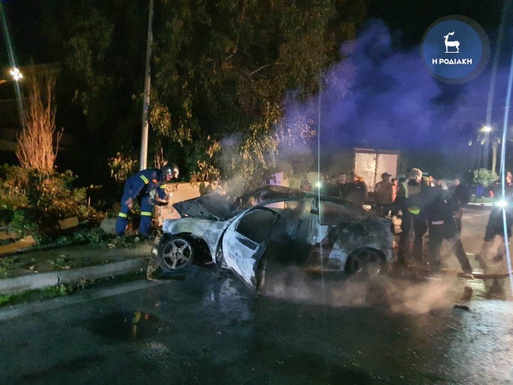 Τροχαίο ατύχημα σημειώθηκε το βράδυ της Παρασκευής (29/12) κοντά στο Φαληράκι της Ρόδου, με αποτέλεσμα να τυλιχθεί στις φλόγες ένα αυτοκίνητο, και να τραυματιστεί ο οδηγός του.