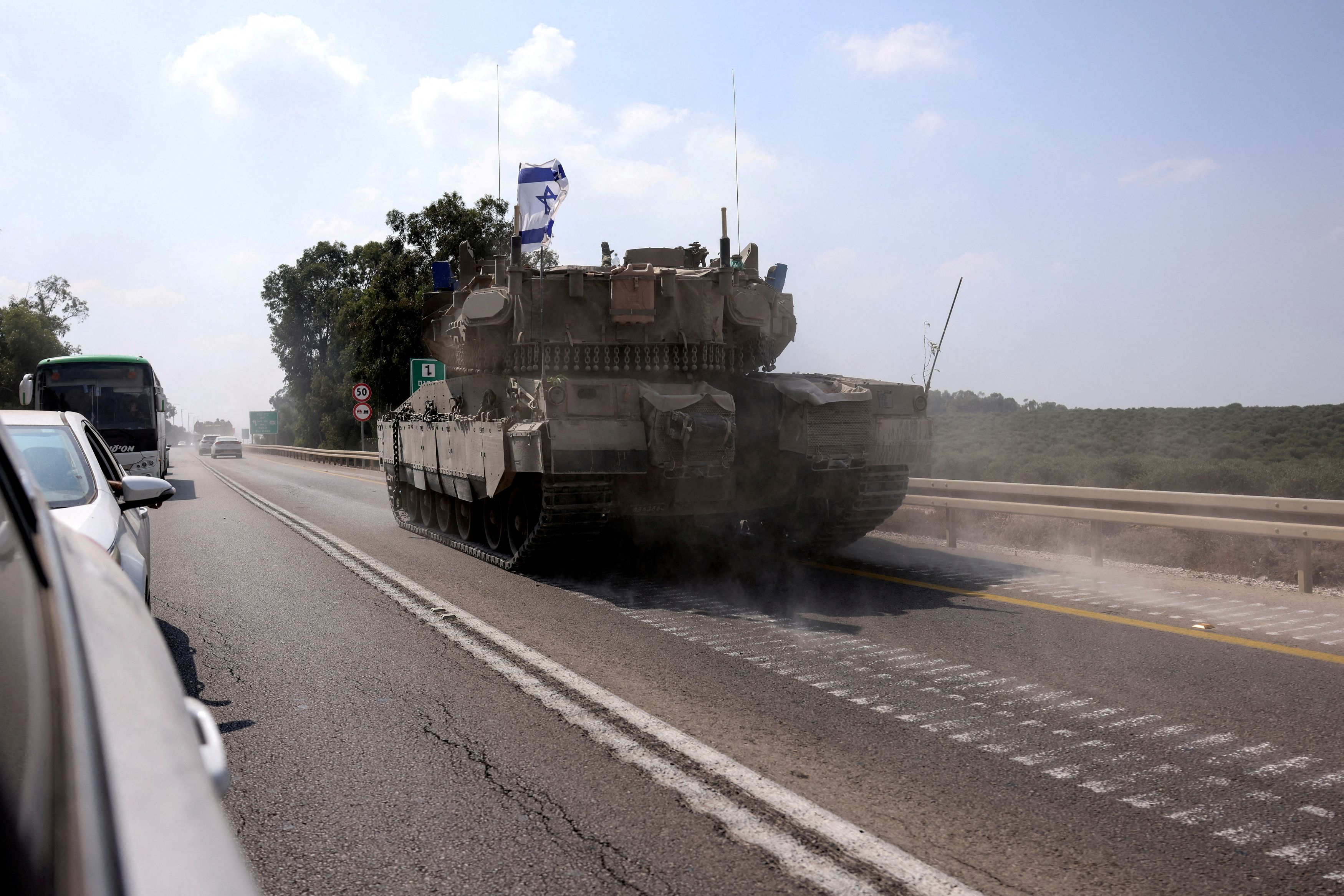 Ένα ισραηλινό άρμα μάχης μία ημέρα μετά την επίθεση της 7ης Οκτωβρίο, κοντά στο Σντερότ στο νότιο Ισραήλ (REUTERS).