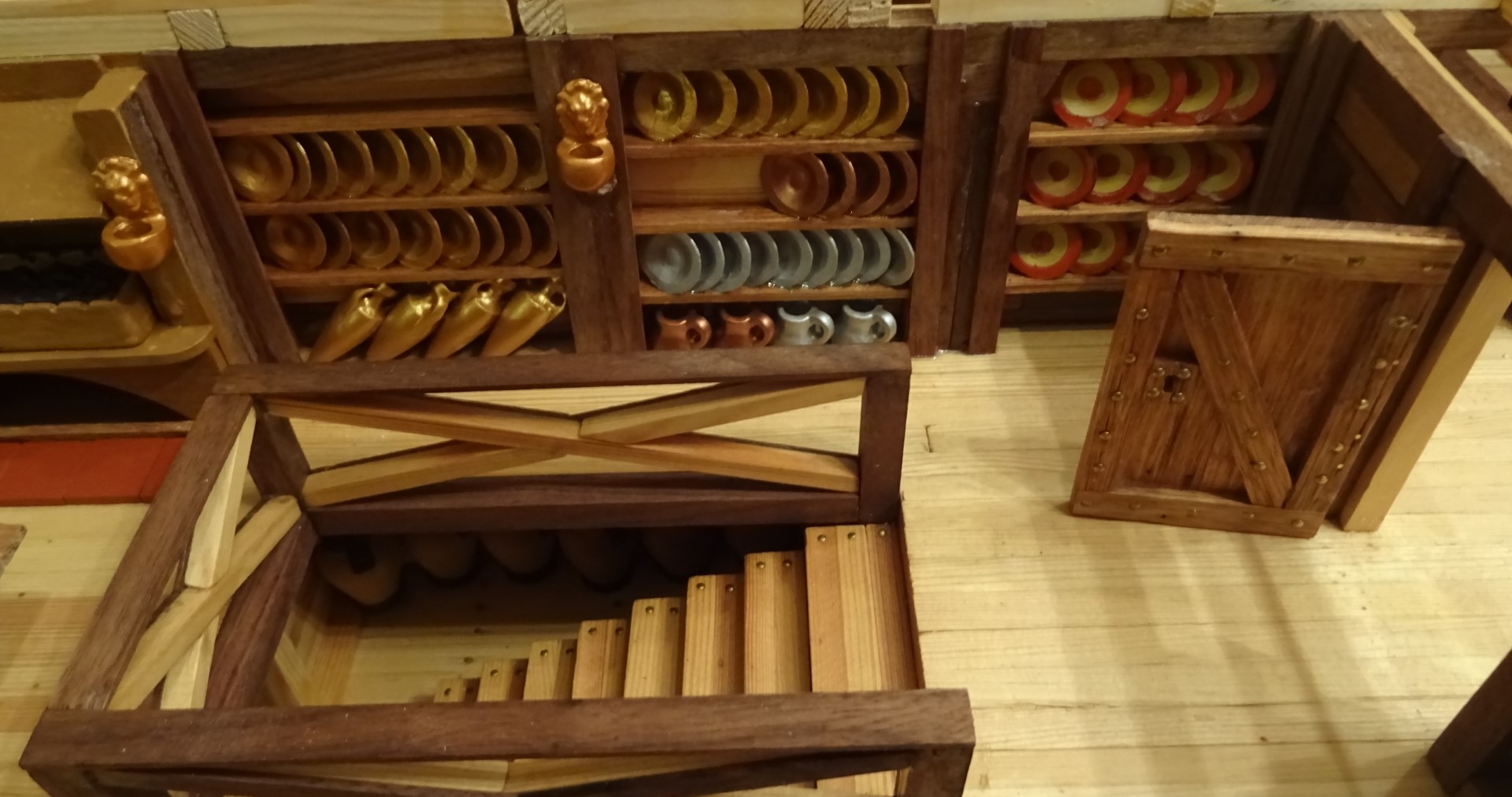 «Στα κατώτερα επίπεδα στο κύτος του πλοίου, υπήρχαν οι χώροι φύλαξης και αποθήκευσης ενός τεράστιου αριθμού και ποικιλίας προϊόντων και προμηθειών απαραίτητων για την διατροφή του πληρώματος αλλά κυρίως την τέρψη.