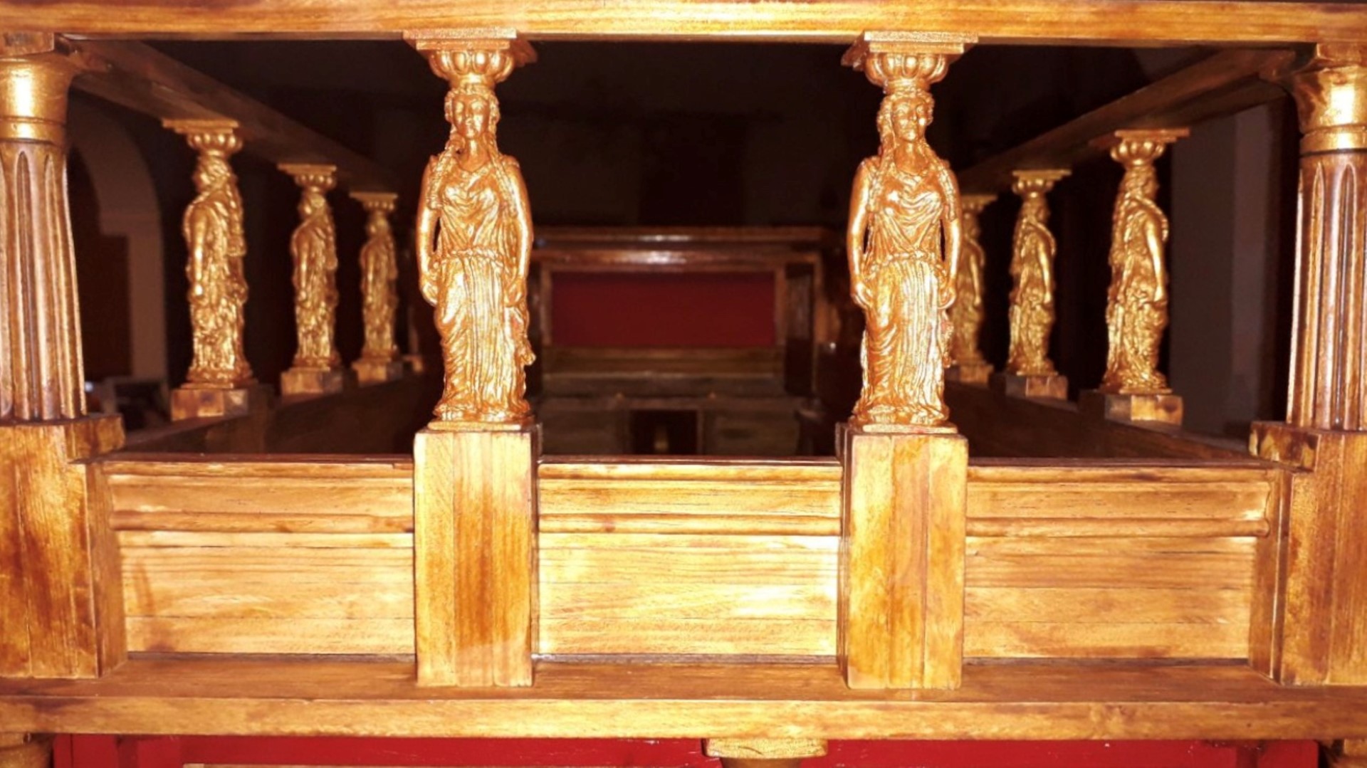 Παντού περίτεχνα έπιπλα και θύρες από πολύτιμη ξυλεία, χρυσοποίκιλτα ανάκλιντρα και σκεύη.