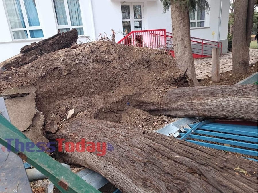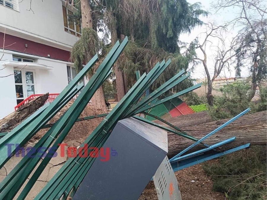 Συγκεκριμένα, ξεριζώθηκαν τουλάχιστον εννέα δέντρα, τα οποία προκάλεσαν εκτεταμένες ζημιές σε χώρους σχολείων στην οδό Χαριλάου της Θεσσαλονίκης. Τα ξεριζωμένα δέντρα έχουν ξηλώσει μεγάλο τμήμα της καγκελόπορτας σχολείου, ενώζημιές προκλήθηκαν και σε τρία Ι.Χ. που βρίσκονταν σταθμευμένα στο χώρο του σχολείου.